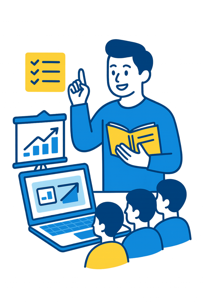 中小企業から上場企業まで、社員のDXスキル向上研修を実施。業務改善・RPA・データ分析をテーマとした研修カリキュラムを構築。